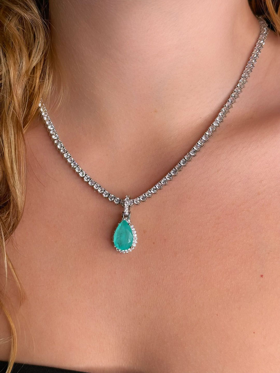 Colar Gota Turmalina Leitosa Prata 925