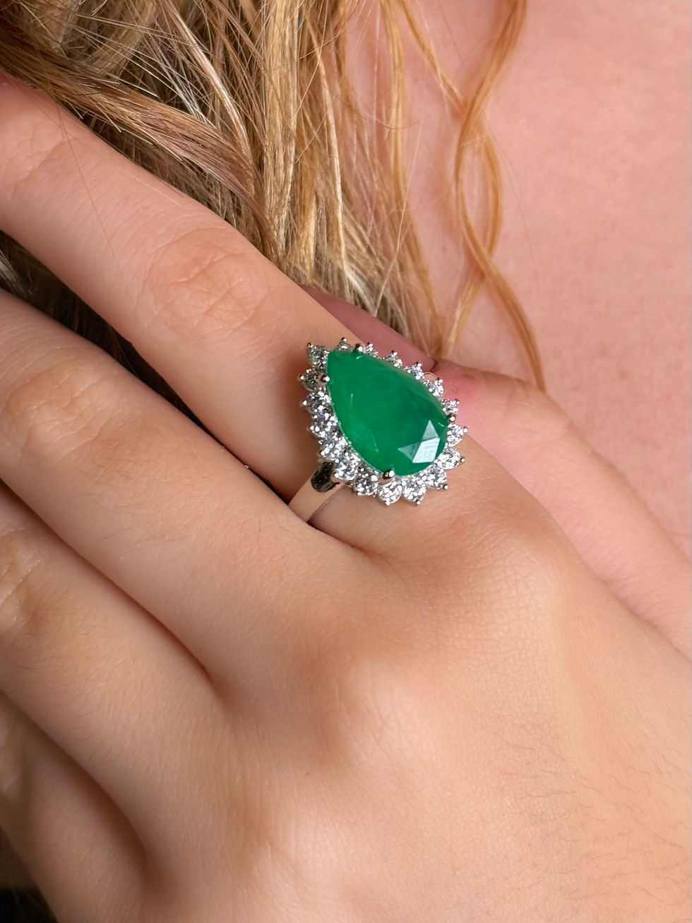 Anel Gota Esmeralda Prata 925